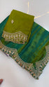 Chinon  saree in shibori desgin with pearl work attached over the border