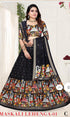 Dola silk lehengas with Kalamkari design all over and blouse of 70-80 cms and dupatta of 2.25 to 2.5 mtrs