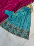 Premium Pure Gold Crush Silk Half Saree With Blouse Duppata Embroidery Work
