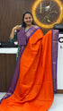Orange with all over zari with purple border and banarsai blouse of 80cms