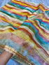 Premium quality tissue crush saree with rainbow colours and golden lace