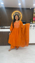 Three piece set with embroidery work over the front part and 3/4 puff hands